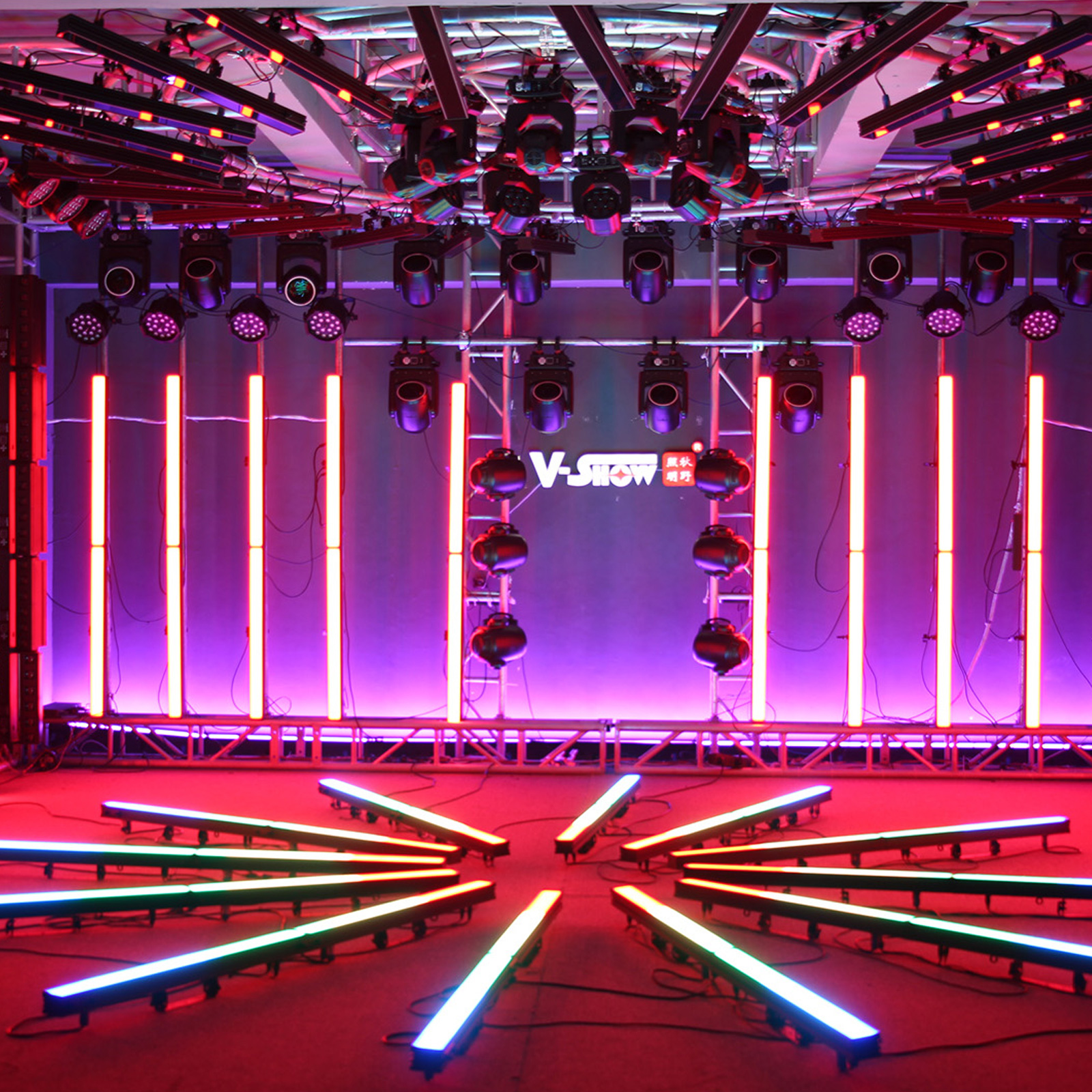 VSHOW main product:moving head light, led studio light, led par light, led bar light, led strobe light, stage effect light, laser light.